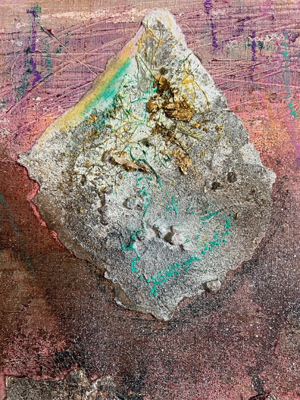 - Mixed media collage on board
